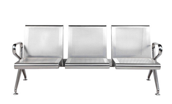 의자를 기다리는 녹슬지 않고 알루미늄 은 회색 페인트 공항