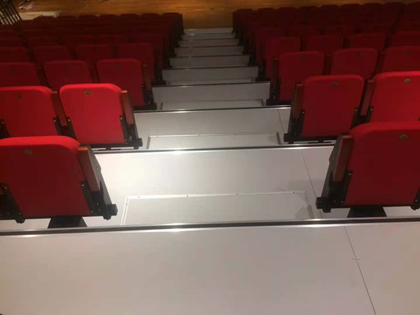 Característica do assento telescópico do Bleacher: A maioria do assento telescópico da tribuna são colocados na sala de conferências, salão e estádio do auditório, gym, ou algum centro de esporte do pubilc. Pode ser fechado e abriu pelo controle elétrico.