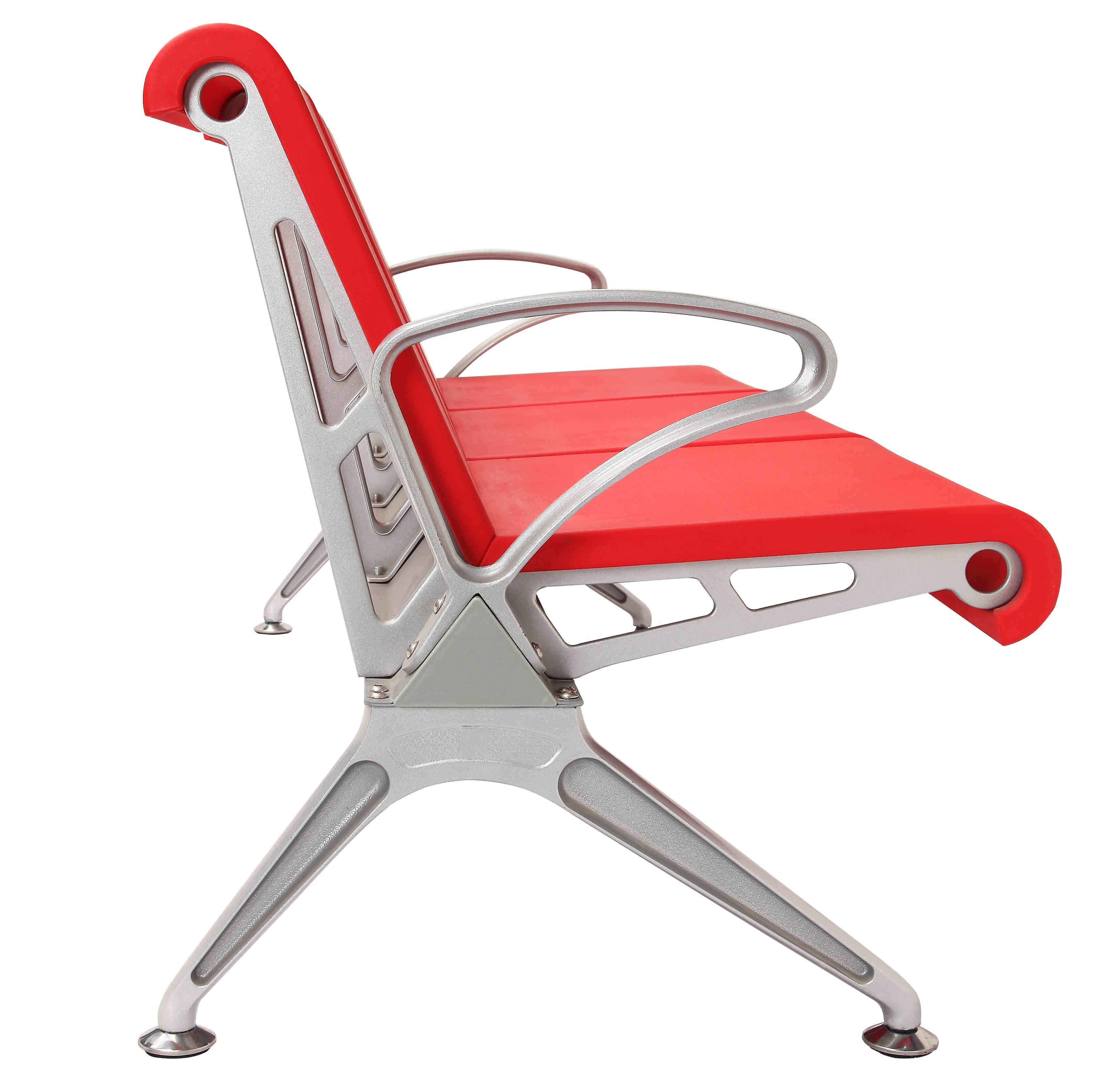 Mertial стула аэропорта ждать: Ноги подлокотника алюминиевого сплава, распыленные с серебряной металлической краской, толщина 1.2MM. Стальная сетка имеет ширину 50CM и толщину 1.5MM, распыленную с серебр-серой металлической краской. Прессформа PU сидит на задней панели, толщина триангулярного луча 1.8MM, распыленный с черной металлической краской. Гальванизируя ноги регулировки.