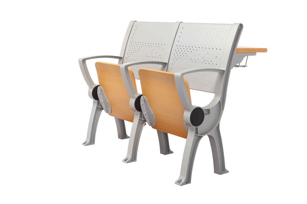 Aluminum alloy fixed feet, electrostatic spraying gray-white metallic paint; back plate 1.2MM steel plate stamping forming, seat plate 15MM multi-layer board hot press forming to stick fireproof surface; 25MM plywood or high-density particle board cold pressing triamine surface fixed writing board; iron Material gravity recovery mechanism.