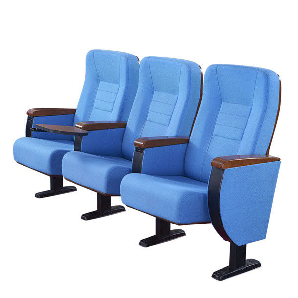 Sky Bule Three Seater Wooden Armrest Folding Auditorium Chairs